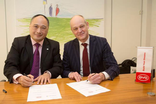 Officials from Connexxion Public Transport, the Dutch subsidiary of Transdev, and BYD Europe today attended a signing ceremony in Hilversum, the Netherlands, of a contract for the supply by BYD of eight pure electric ebuses.